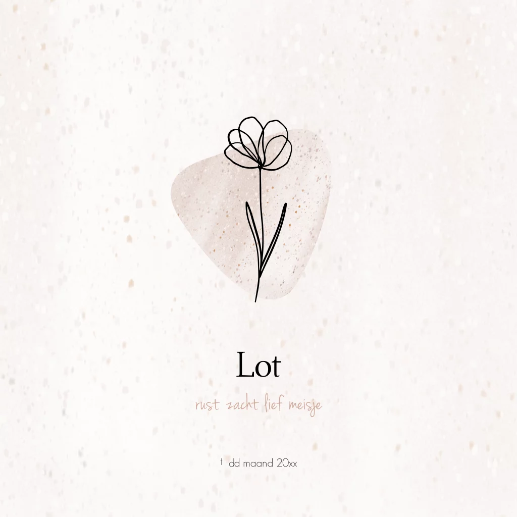 Rouwkaart voor een kindje met een outline bloem. Op de binnenzijde is ruimte voor een foto.
