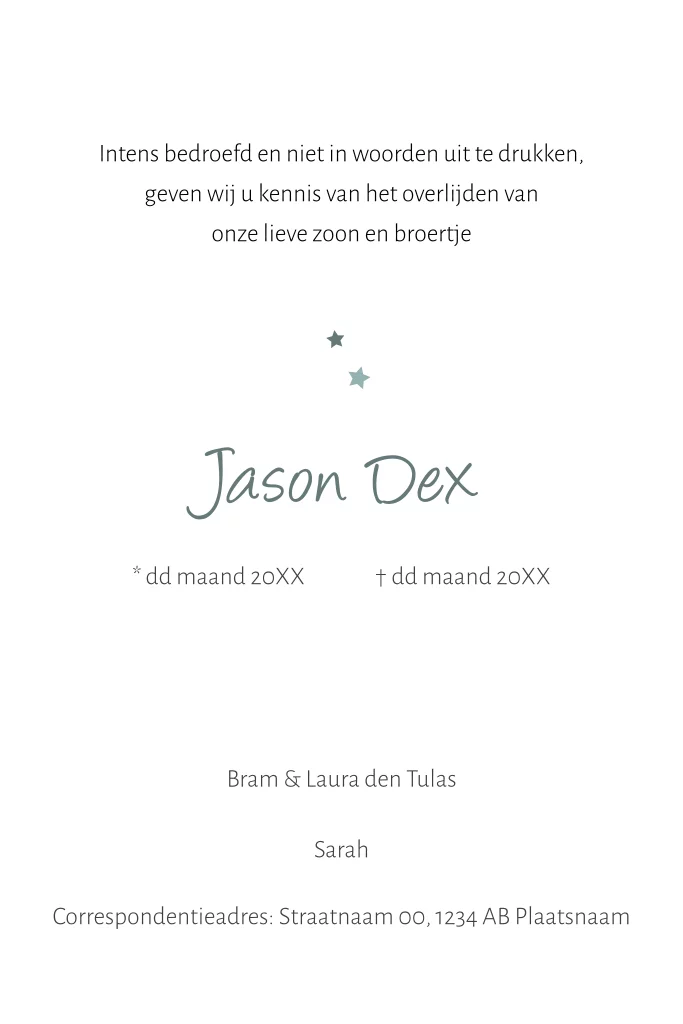 Rouwkaart baby-kind