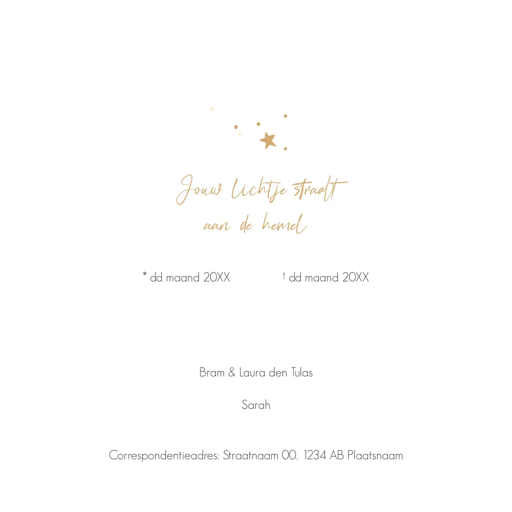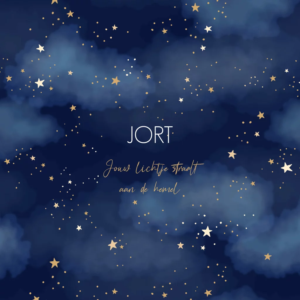 Rouwkaart voor een baby of kindje met een sterrenhemel. Op de binnenzijde is ruimte voor een eigen foto.