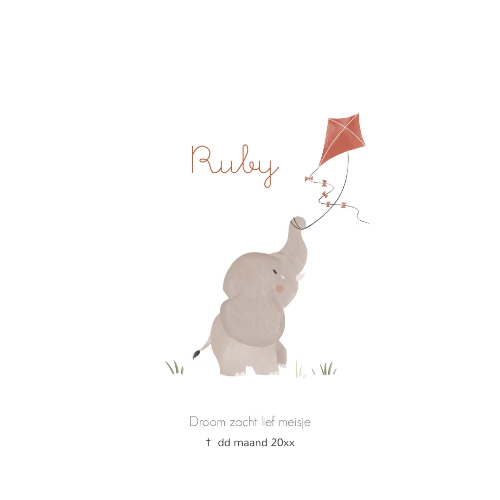 Kaart overlijden kindje met olifantje en vlieger