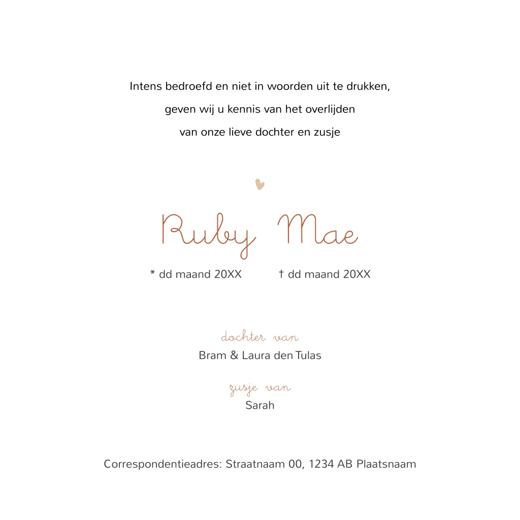 Rouwkaart baby-kind