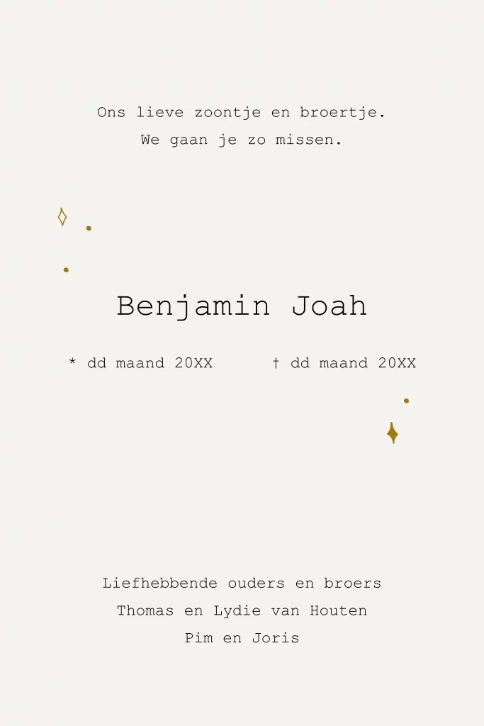 Rouwkaart baby-kind