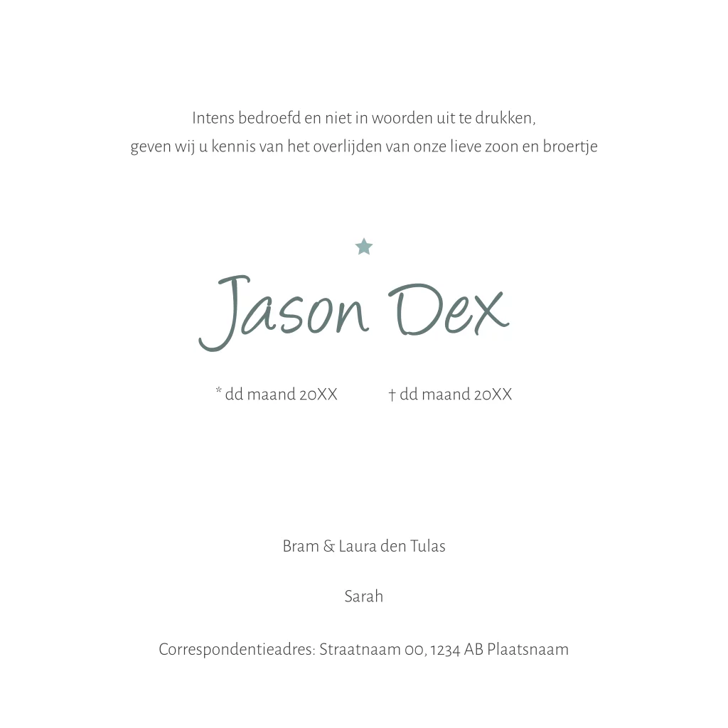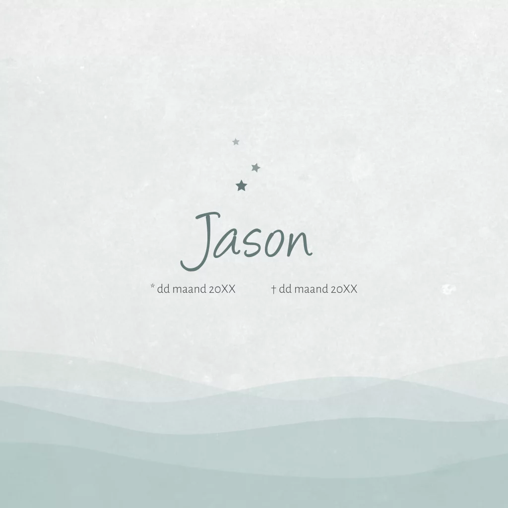 Rouwkaart met blauwe glooiende heuvels en sterretjes