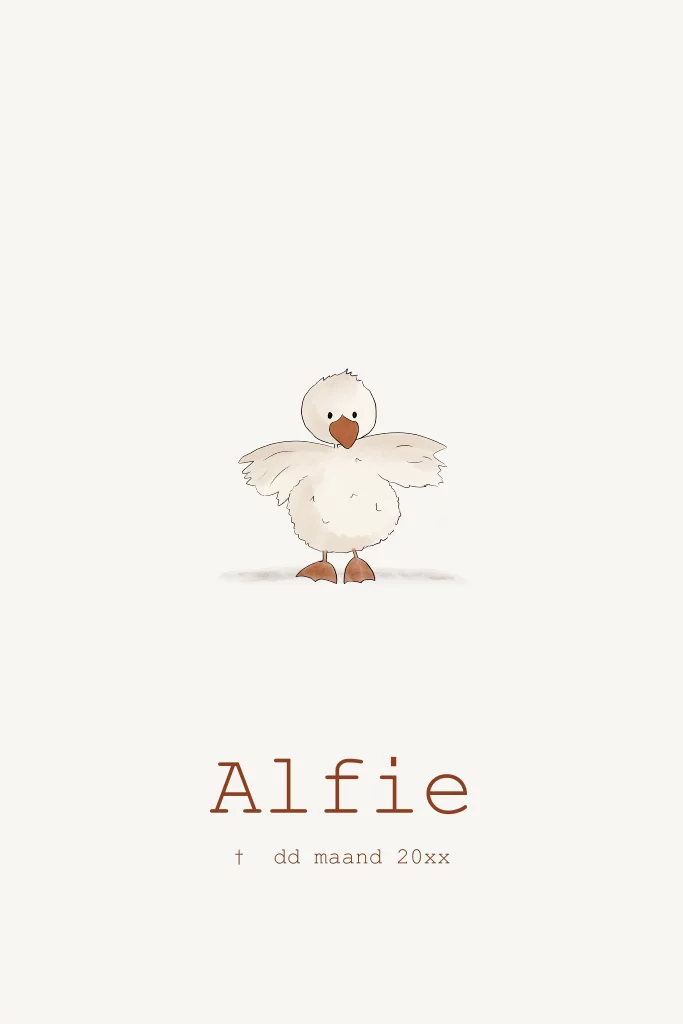Rouwkaart kind baby kuiken eendje