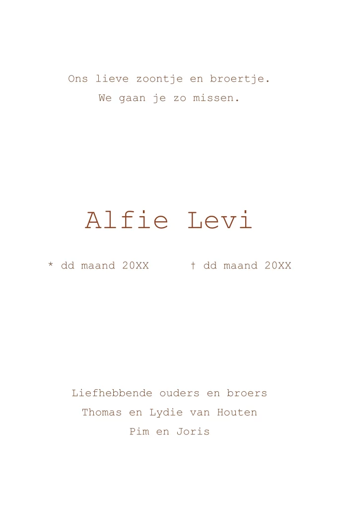 Rouwkaart baby-kind
