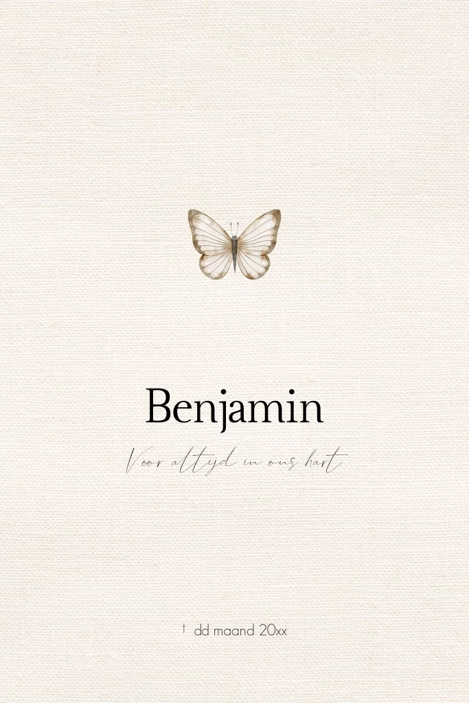 Rouwkaart kind baby neutraal linnen look vlinder