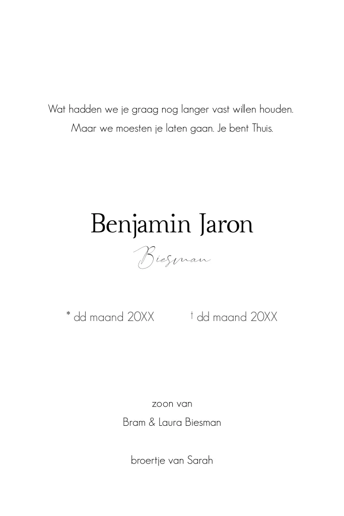 Rouwkaart baby-kind