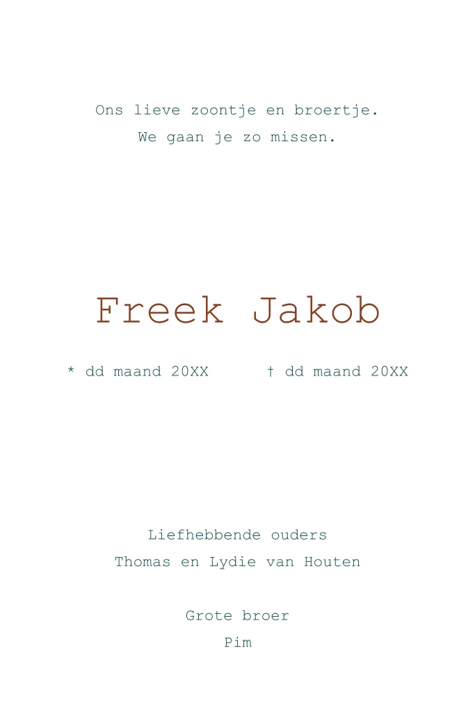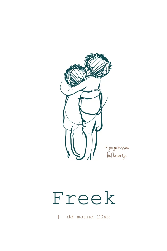 Rouwkaart met twee broertjes. Bekijk ook andere samenstellingen van knuffelende broertjes en zusjes onder onze afbeeldingen.
