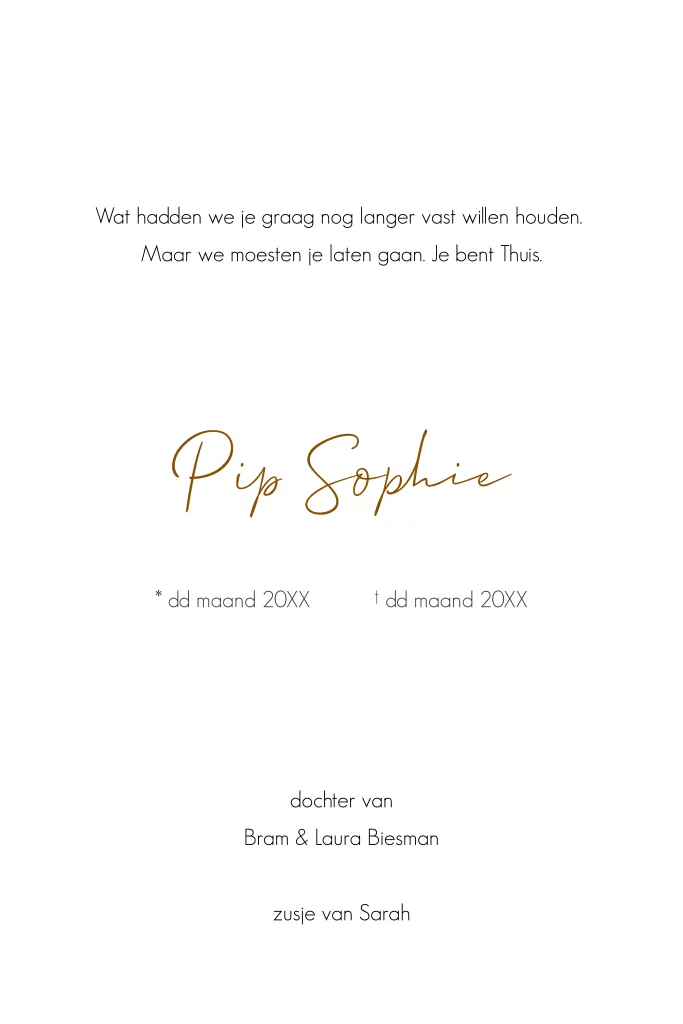 Pas de teksten, kleuren en de lettertypes aan naar je eigen wensen.