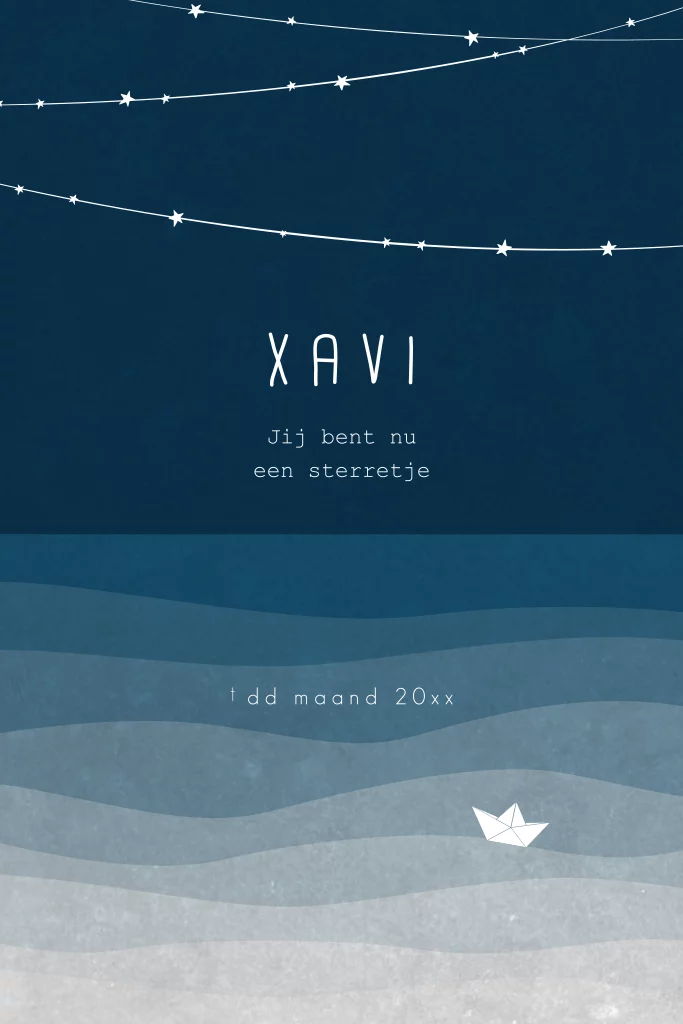 Overlijdenskaart voor een kind met de zee en een sterrenslinger