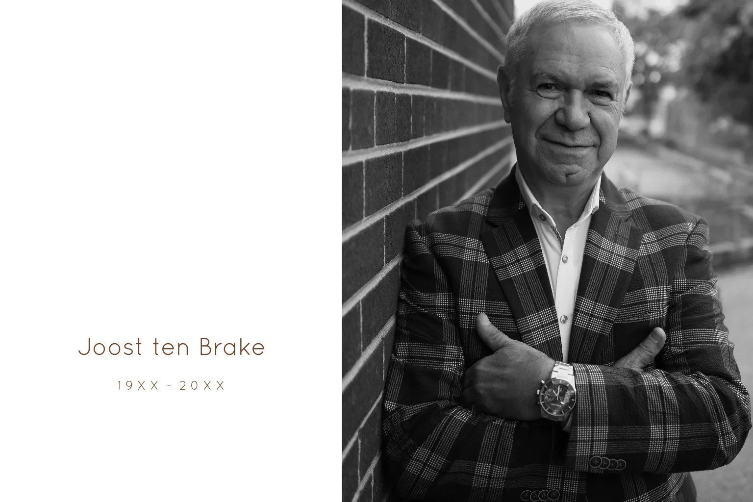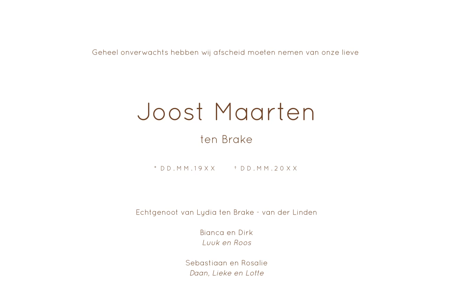 Rustige rouwkaart waarbij je zelf de foto op de voorzijde kunt vervangen voor een eigen foto.