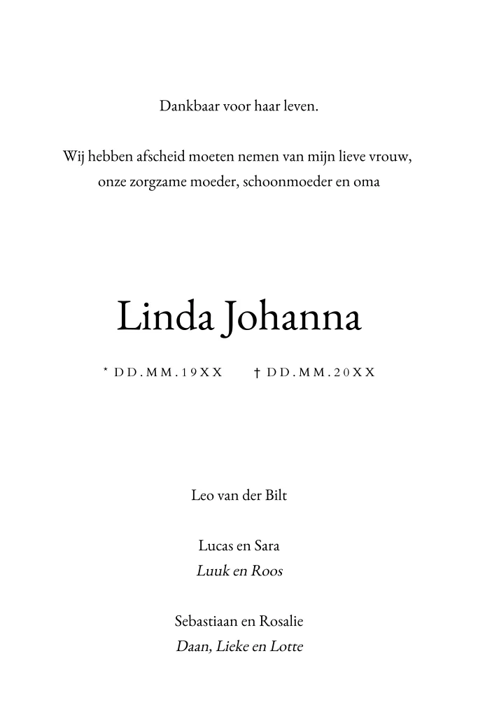 Pas de foto, teksten, kleuren en lettertypes aan naar je eigen wens. Hulp nodig bij het opmaken van deze kaart? We helpen je er graag bij.