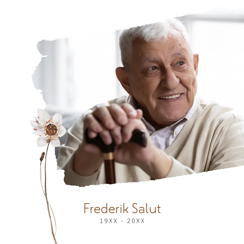 Rouwkaart met foto en aquarel bloem