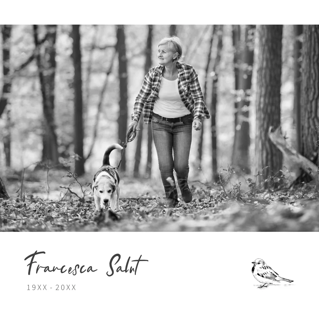 De foto kun je in de editor gemakkelijk vervangen voor een eigen foto. Pas de teksten, kleuren en lettertypes aan naar je eigen wensen.