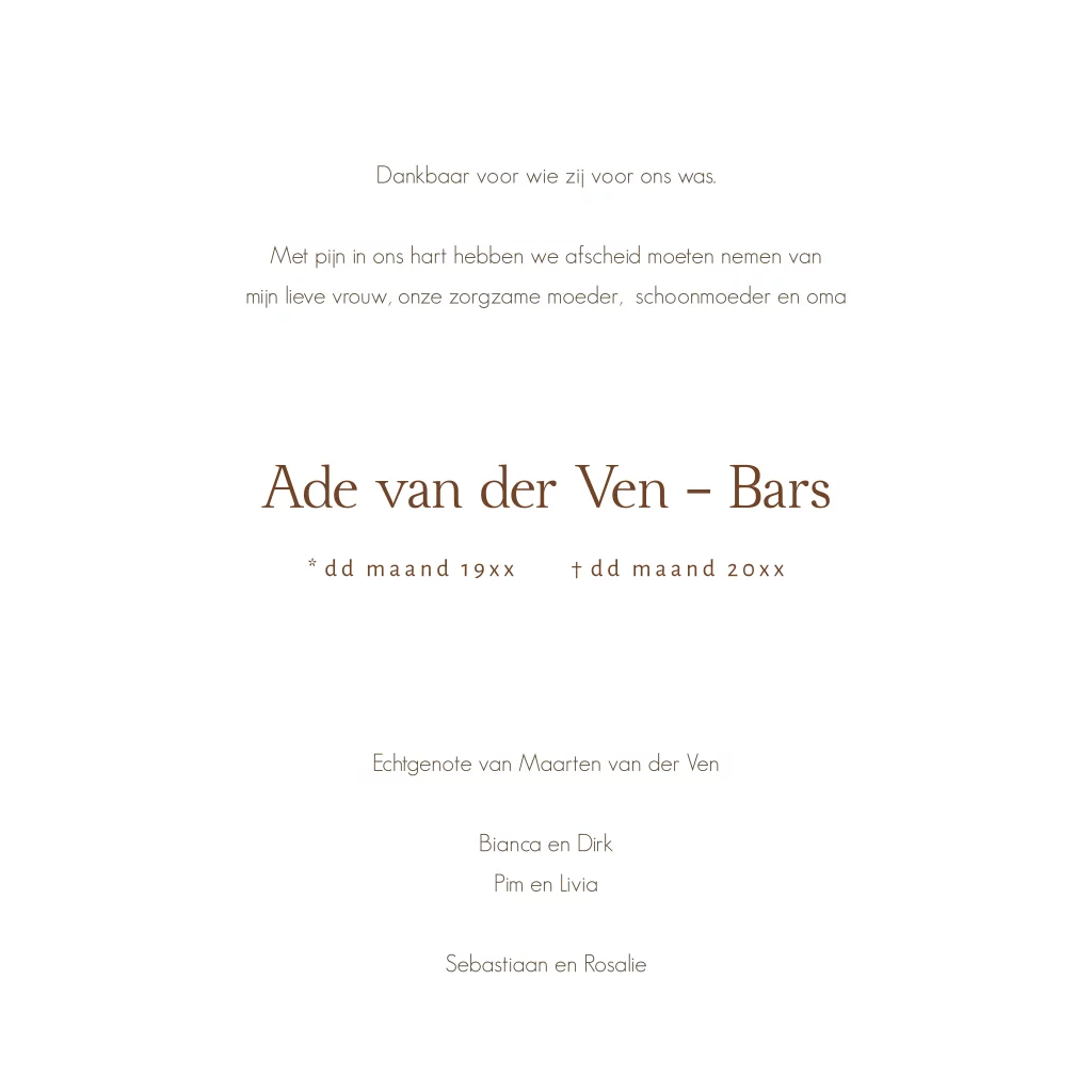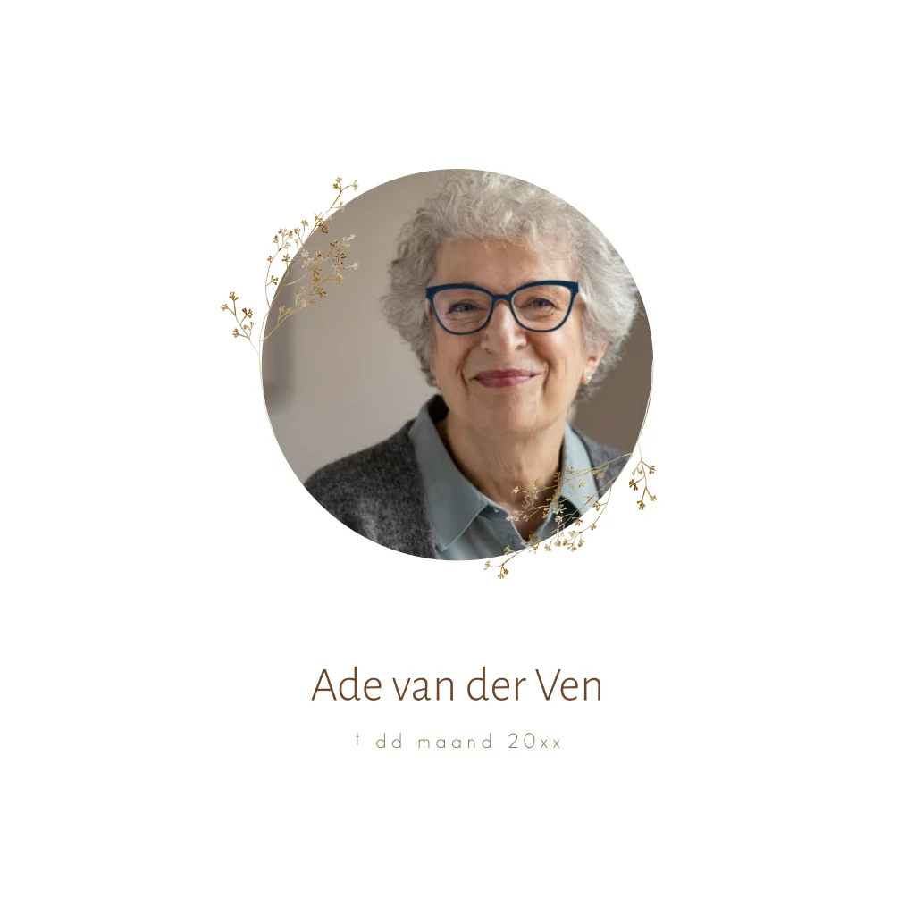 Rustige rouwkaart met aan de binnenzijde een foto die je makkelijk zelf vervangt. Met subtiele veldbloemen als sierlijk detail.