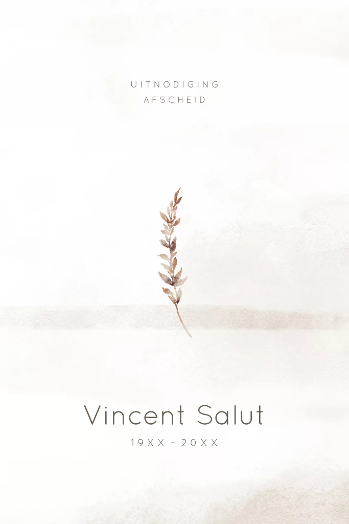 Rustige rouwkaart met natuurlijke kleuren en aquarel veldbloem takje. Op de binnenzijde is ruimte voor een foto.