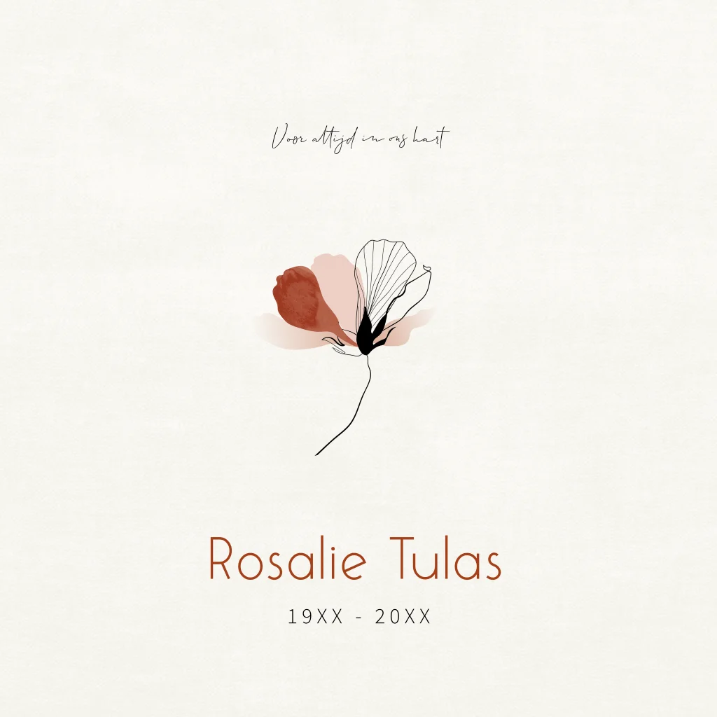 Overlijdenskaart met een geschilderde aquarel bloem, een klaproos. Deze rouwkaart voor overlijden heeft een rustige uitstraling.