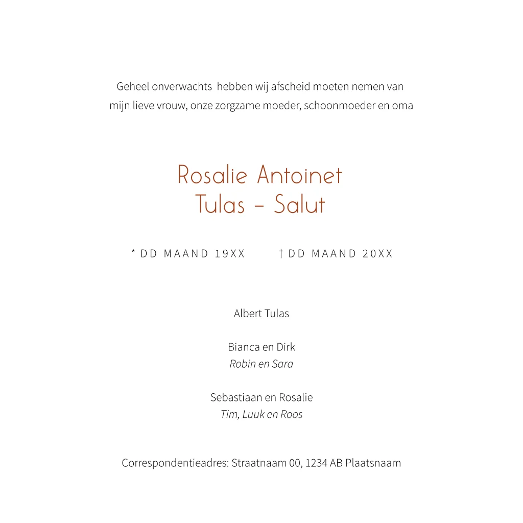 Pas de teksten, kleuren en lettertypes aan naar je eigen wensen. Hulp nodig bij het opmaken van deze kaart? We helpen je er graag bij.