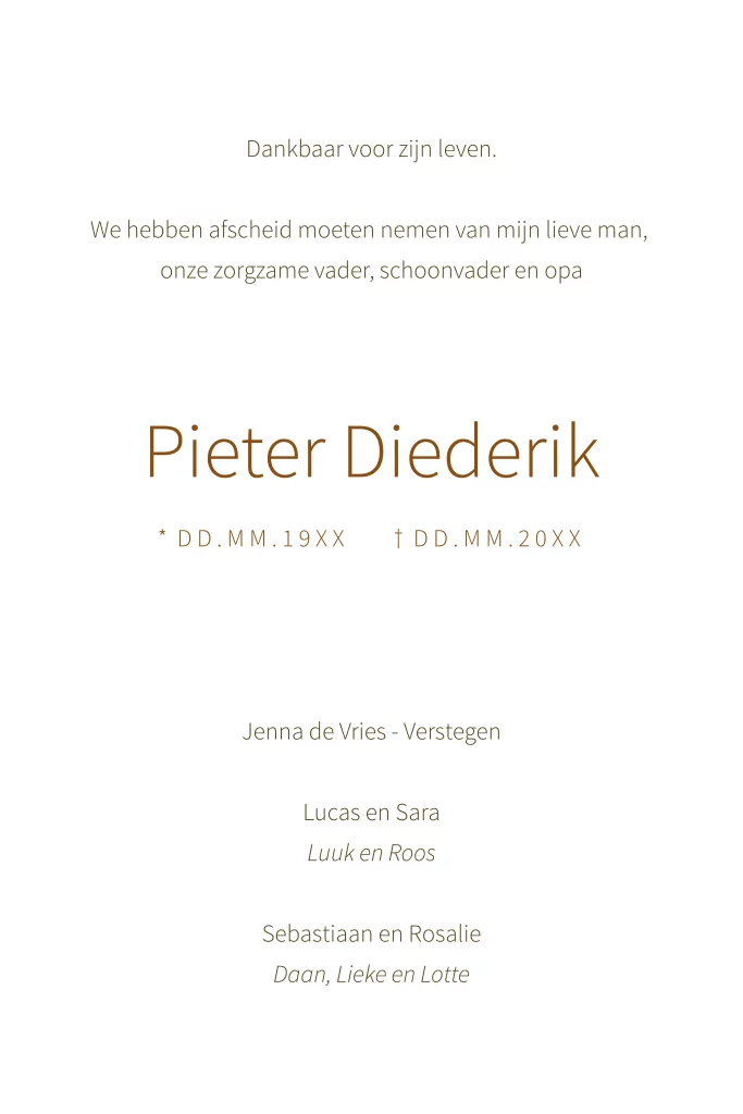 Upload eventueel een eigen foto. Pas de teksten, kleuren en lettertypes aan naar je eigen wens. Hulp nodig bij het opmaken van deze kaart? We helpen je er graag bij.
