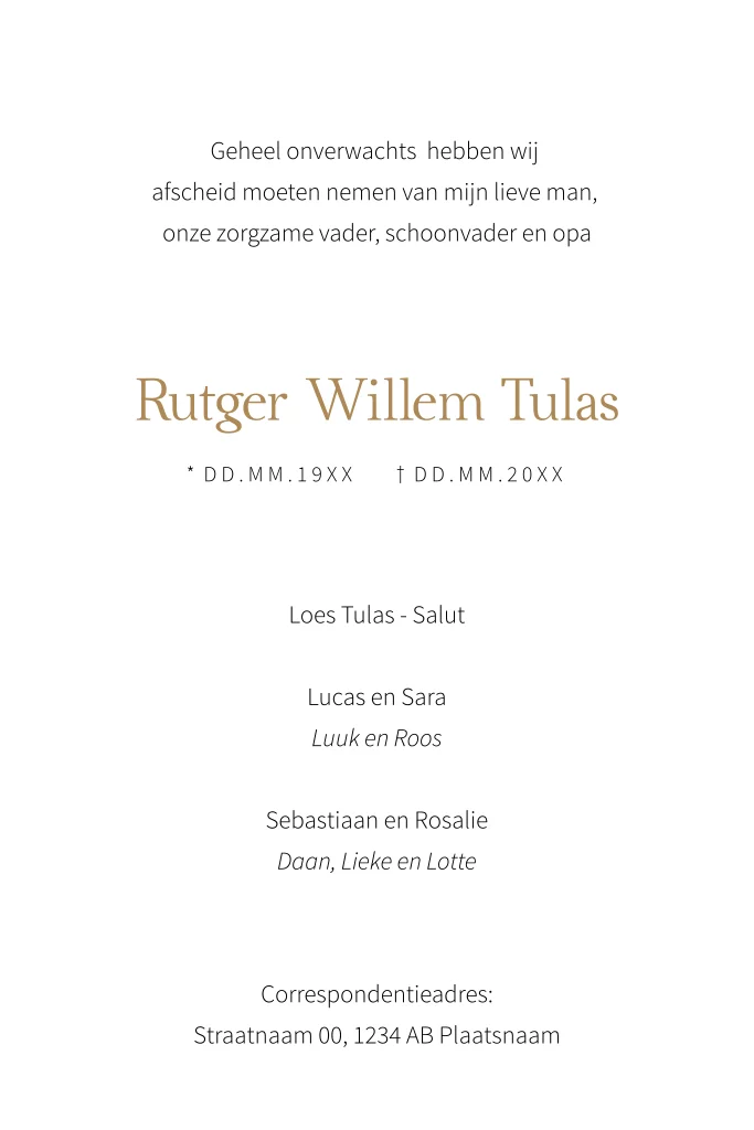 Pas de teksten, kleuren en lettertypes aan naar je eigen wensen. Hulp nodig bij het opmaken van deze kaart? We helpen je er graag bij.