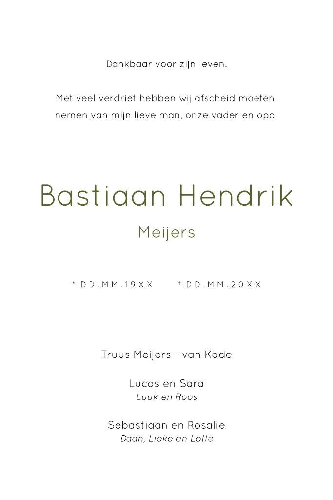 Upload een eigen foto. Pas de teksten, kleuren en lettertypes aan naar je eigen wens. Hulp nodig bij het opmaken van deze kaart? We helpen je er graag bij.