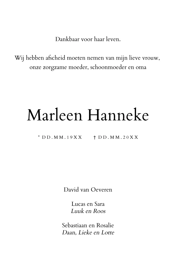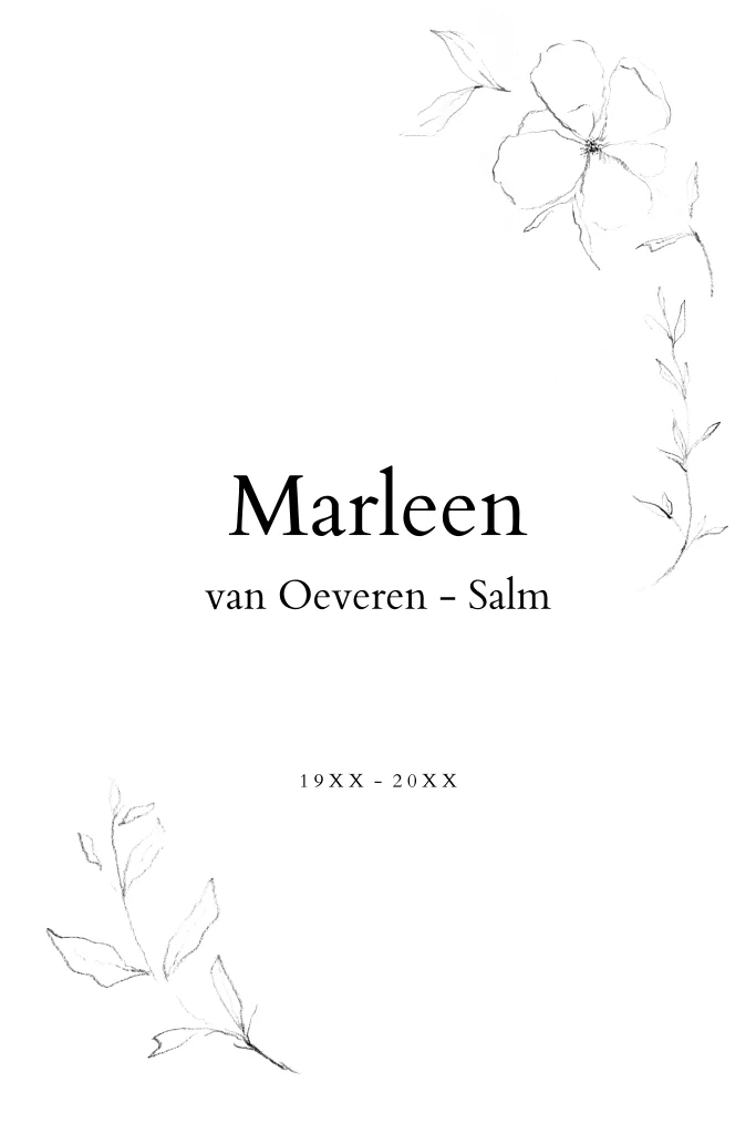 Een minimalistische en eenvoudige rouwkaart met geschetste bladeren en bloemen.