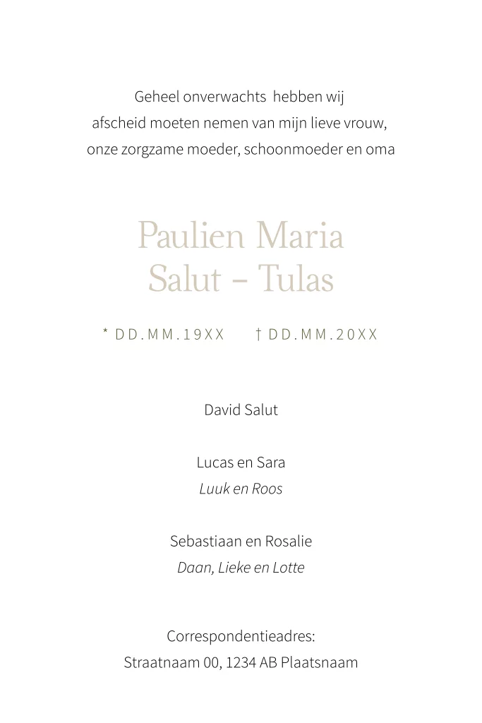 Pas de teksten, kleuren en lettertypes aan naar je eigen wensen. Hulp nodig bij het opmaken van deze kaart? We helpen je er graag bij.