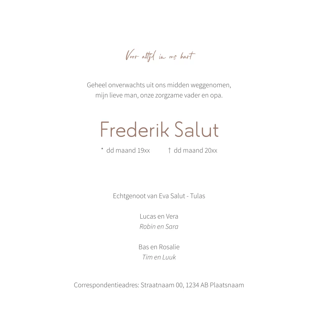 Vervang de tekst voor een eigen tekst en pas de kleuren en de lettertypes aan naar je eigen wensen.